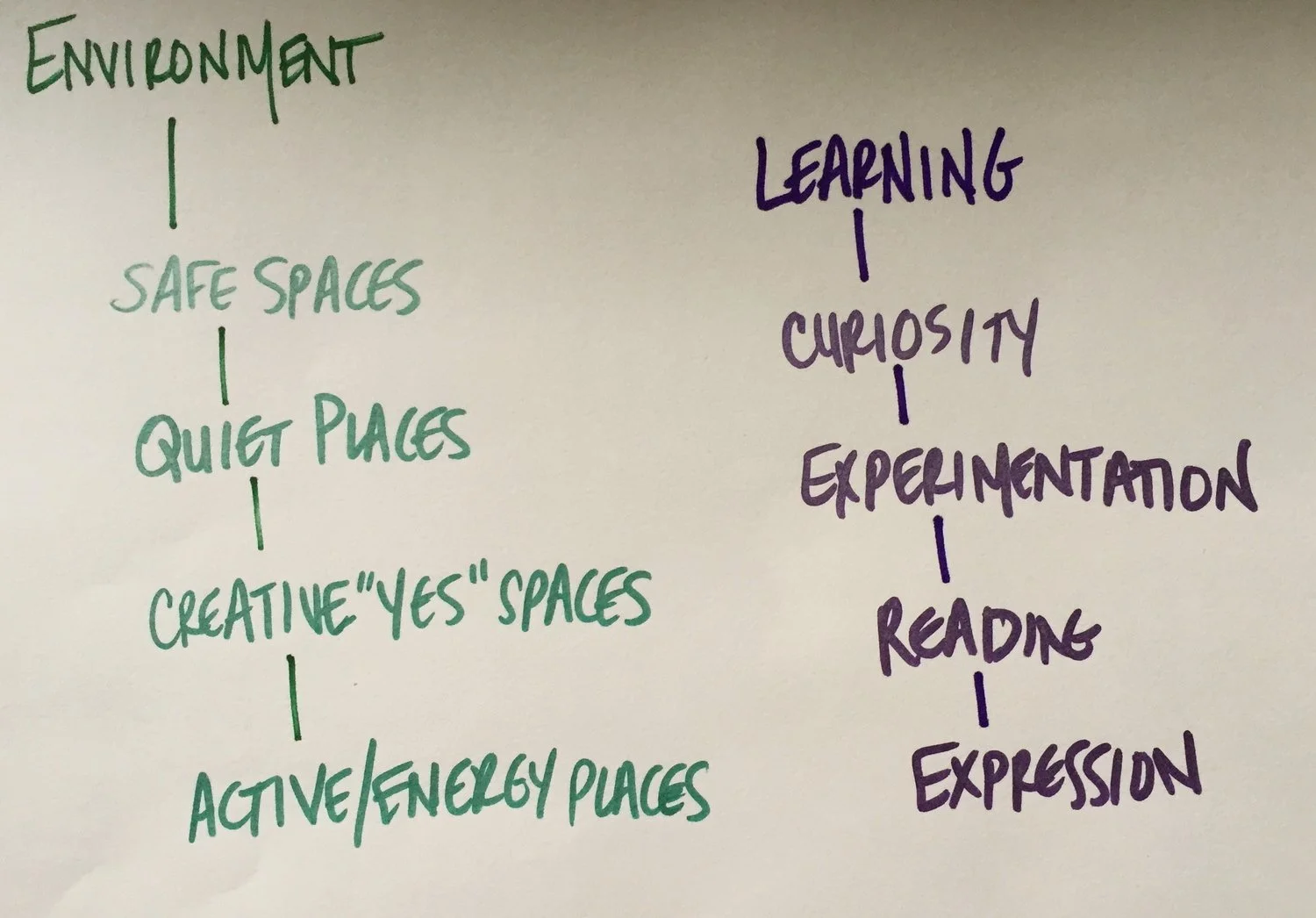 We create safe spaces: quiet places, creative “yes” spaces, and active/energy places. With these particular questions, the emerging theme was how we create active/energy places (hiking, playing outside, going to the zoo, going to the beach, going on trips). We definitely have creative "yes" places--meaning, we can experiment with cooking, we do art, we make music. It also ties back to the learning component . . . we are willing to try new things.
