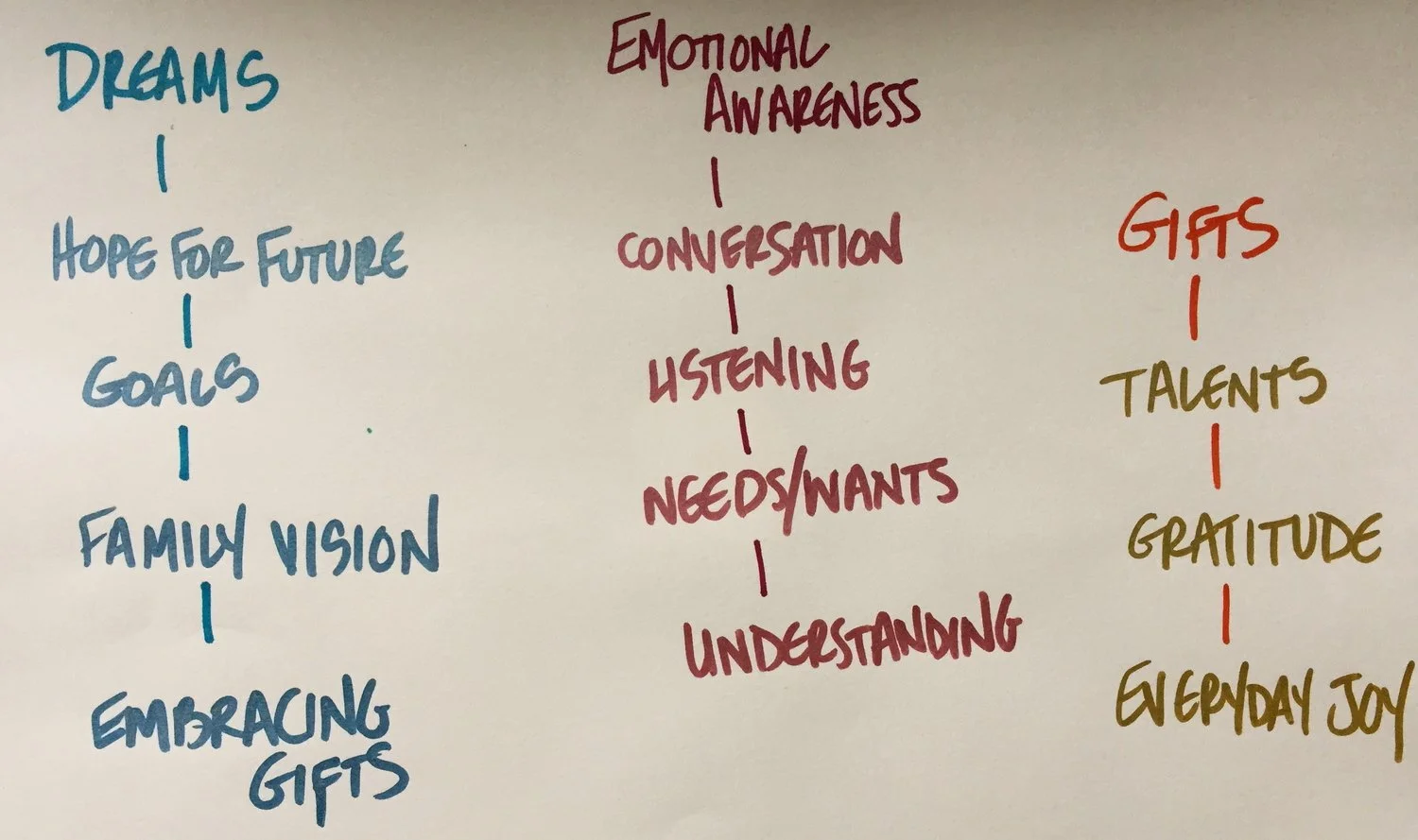 The great thing about these concepts is that no matter where you are in your family right now, you can start to apply change through changing the dialogue. You may not walk through the whole process above--you may simply just have a meal together and ask questions about your family's best moments, listening intently to what each person shares. It does not have to be formal. It can just be a simple change in approach.
